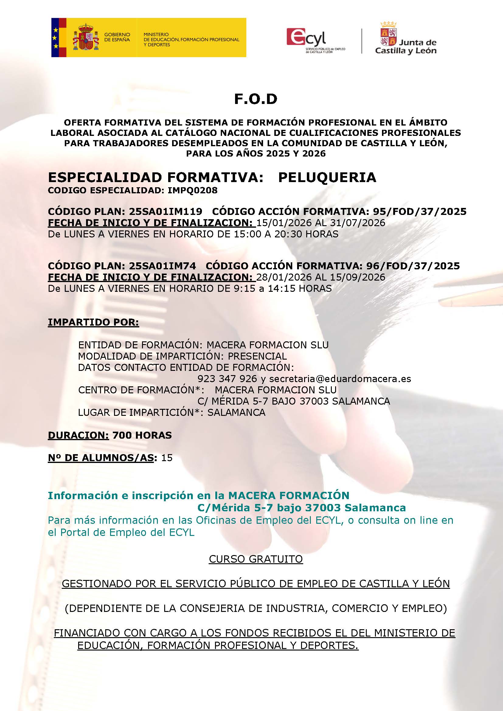MF0349_2: Peinados, acabados y recogidos (120 horas).